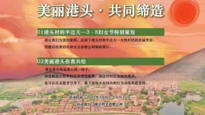 中国区域协调发展与乡村建设研究院(下称“研究院”)长期关注和跟踪港头村的发展,在港头村开展共同缔造工作坊,由师生和村民共同参与。今年3月8日“三八国际劳动妇女节”,在研究院和广东恒健投资控股有限公司的共同推动下,港头村开展了“美好港头 共同缔造”活动。